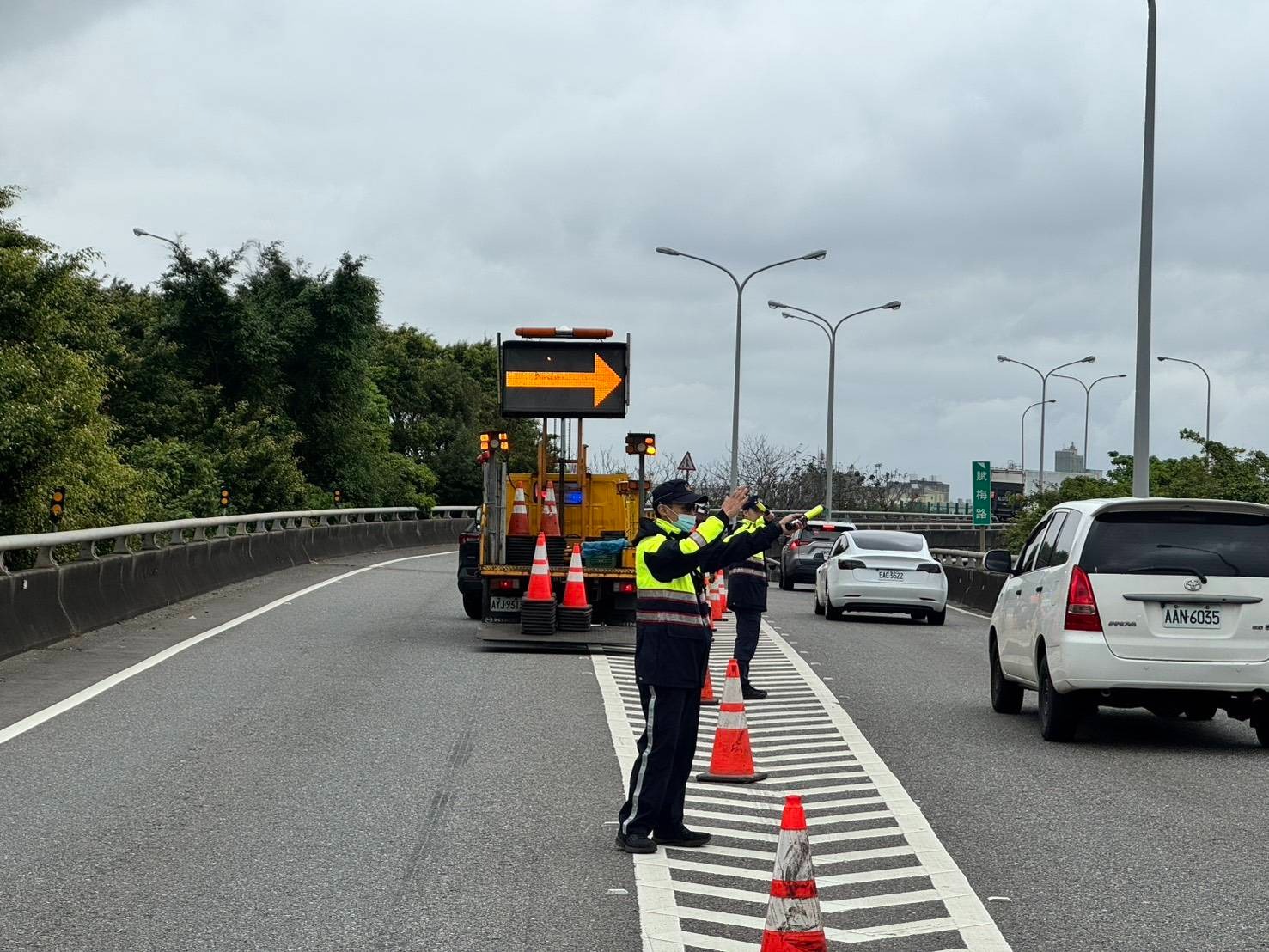 此次演練由交通警察大隊統籌規劃,並結合轄區分局警力及義交民力共同執行,針對車隊通行時各重要路口交通管制、側向車流控管、交通錐預置、勤務通報與應變協調等重點項目逐一測試。演練過程中,各單位依照既定流程操作,透過無線電即時聯繫,確保車隊動態能迅速通報至各管制路口,使勤務銜接順暢、指揮調度明確。