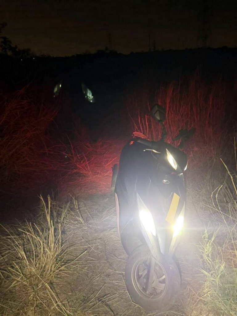 更糟的是,張男騎乘機車行經一處落差明顯的土坑時,車輪不慎陷入鬆軟泥地,導致機車動彈不得。他在荒郊野外進退兩難,加上夜色深沉、環境陰森,體力與精神逐漸耗盡,只好趕緊打電話向警方求助。
