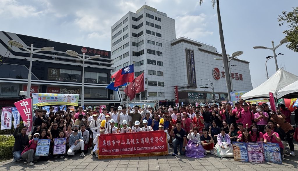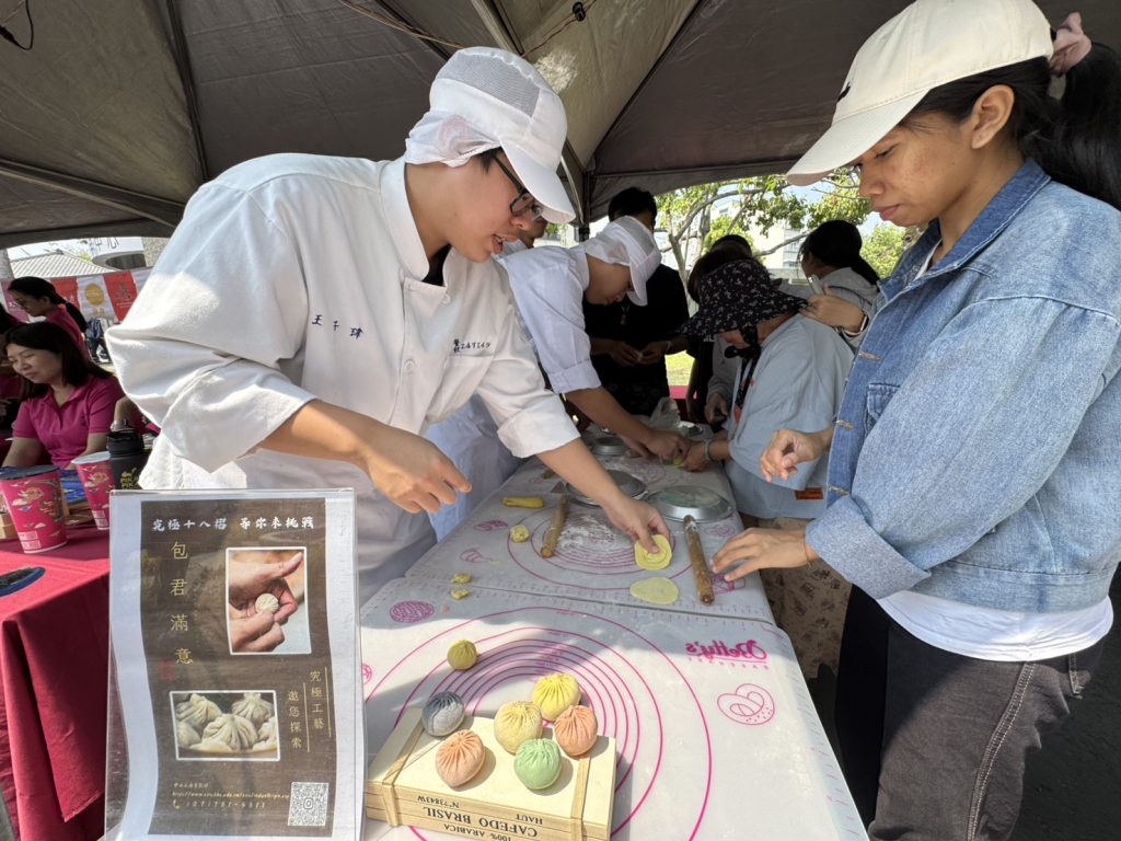 高雄市中山工商十四日在屏東公園椰林大道舉行盛大的2026「技職夢想家—AI創意教學與東南亞文化博覽會」,現場熱鬧滾滾,十六個科二十個攤位結合AI科技、手作實作、美食試吃、異國文化等展現各科特色,並安排精彩社團表演與豐富摸彩活動,鼎泰豐實習學生演示小籠包「黃金十八摺」神技,整場活動兼具教育性與娛樂性,宛如嘉年華會,吸引滿滿人潮。