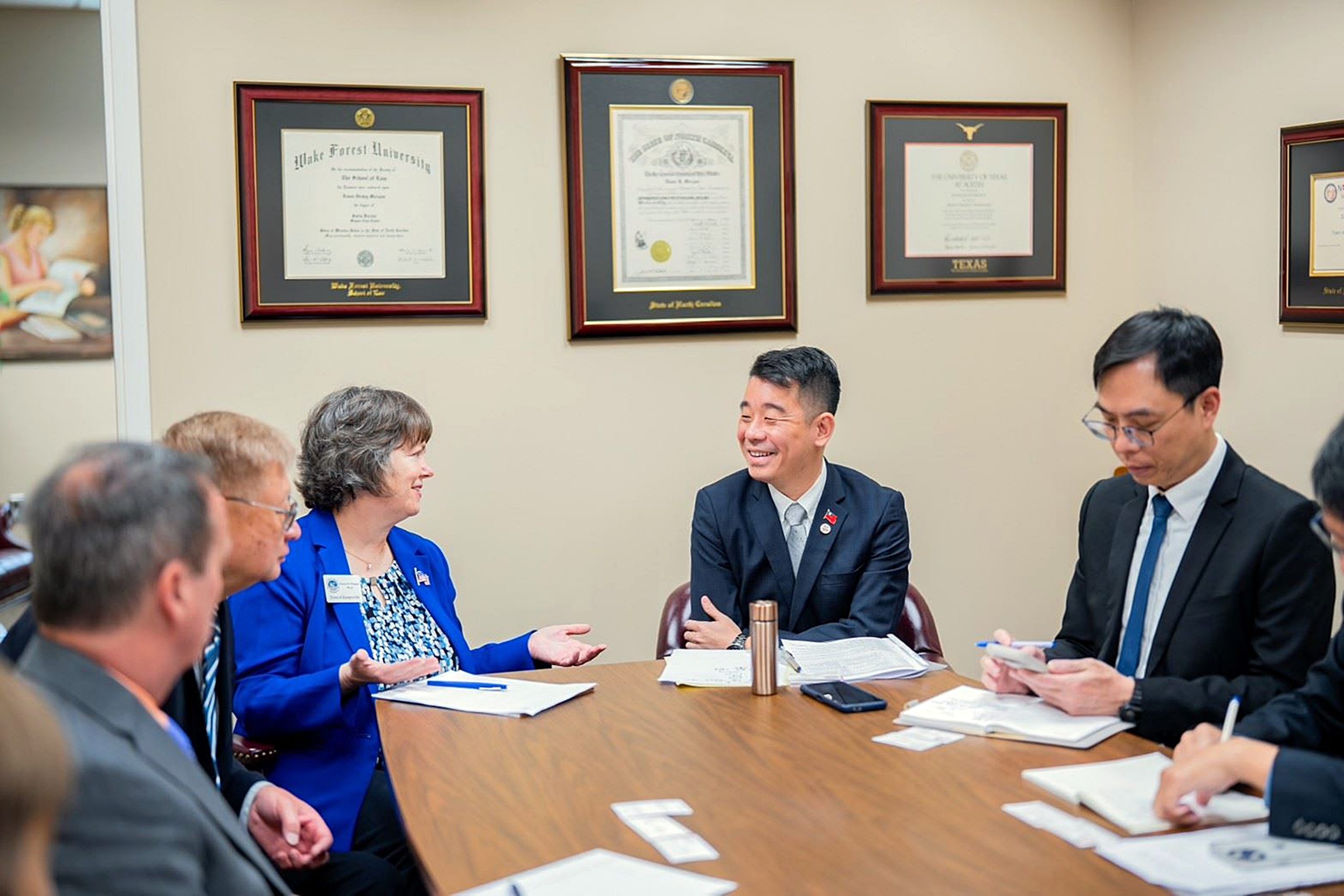 桃市府副秘書長金志聿率代表團訪美,拜訪桃園市大溪區姊妹市美國科納斯維爾(Kernersville),由該市首位女性市長Dawn Morgan親自接待。科納斯維爾在全球僅有一個姊妹市,就是桃園大溪,由於訪團團長金副秘書長是大溪人,更讓場面溫馨熱烈。Morgan市長也特別展示二00四年雙方締盟合約、歷史照片及二十二年前致贈的「大溪陀螺」等珍貴文物,並回贈市旗予桃園代表團,象徵兩市跨越二十二年的友誼歷久彌新。