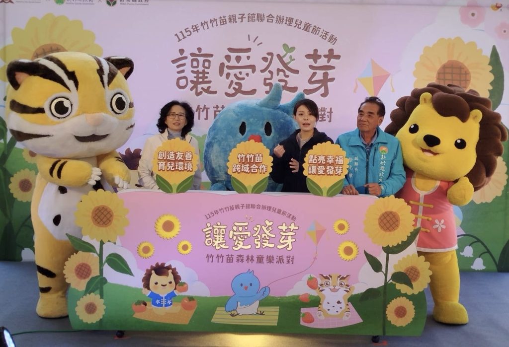 「竹竹苗森林童樂派對:讓愛發芽」活動十四日在新竹市立動物園登場。新竹市長高虹安、新竹縣副縣長徐元棟、苗栗縣副縣長邱俐俐與三縣市吉祥物皮卡、皮皮獅及貓裏喵啟動象徵「竹竹苗幸福育兒金黃地圖」,串聯區域親子館資源的「溫暖光譜」,展現跨域整合育兒資源成果。