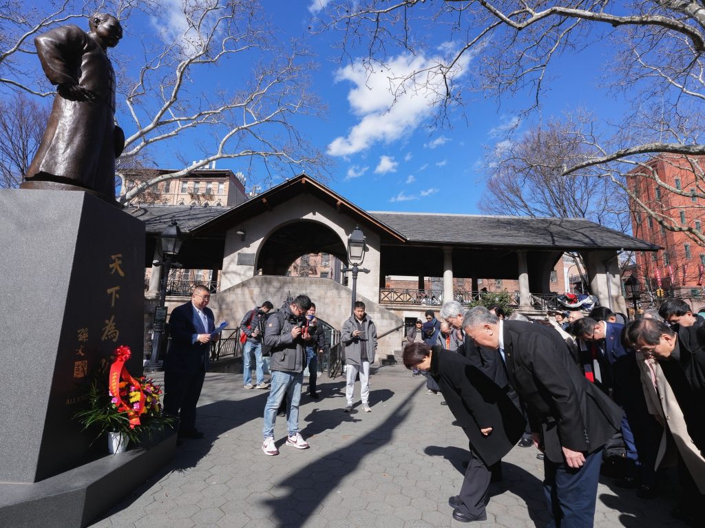 盧秀燕除了拜會紐約中華公所主席伍銳賢等僑界領袖,並到哥倫布公園向國父銅像致敬獻花。她強調,中華民國由國父與僑胞共同創建,此行是緬懷先賢,要親自感謝過去僑胞身為「革命之母」在風雨中守護國家的堅定信念。
