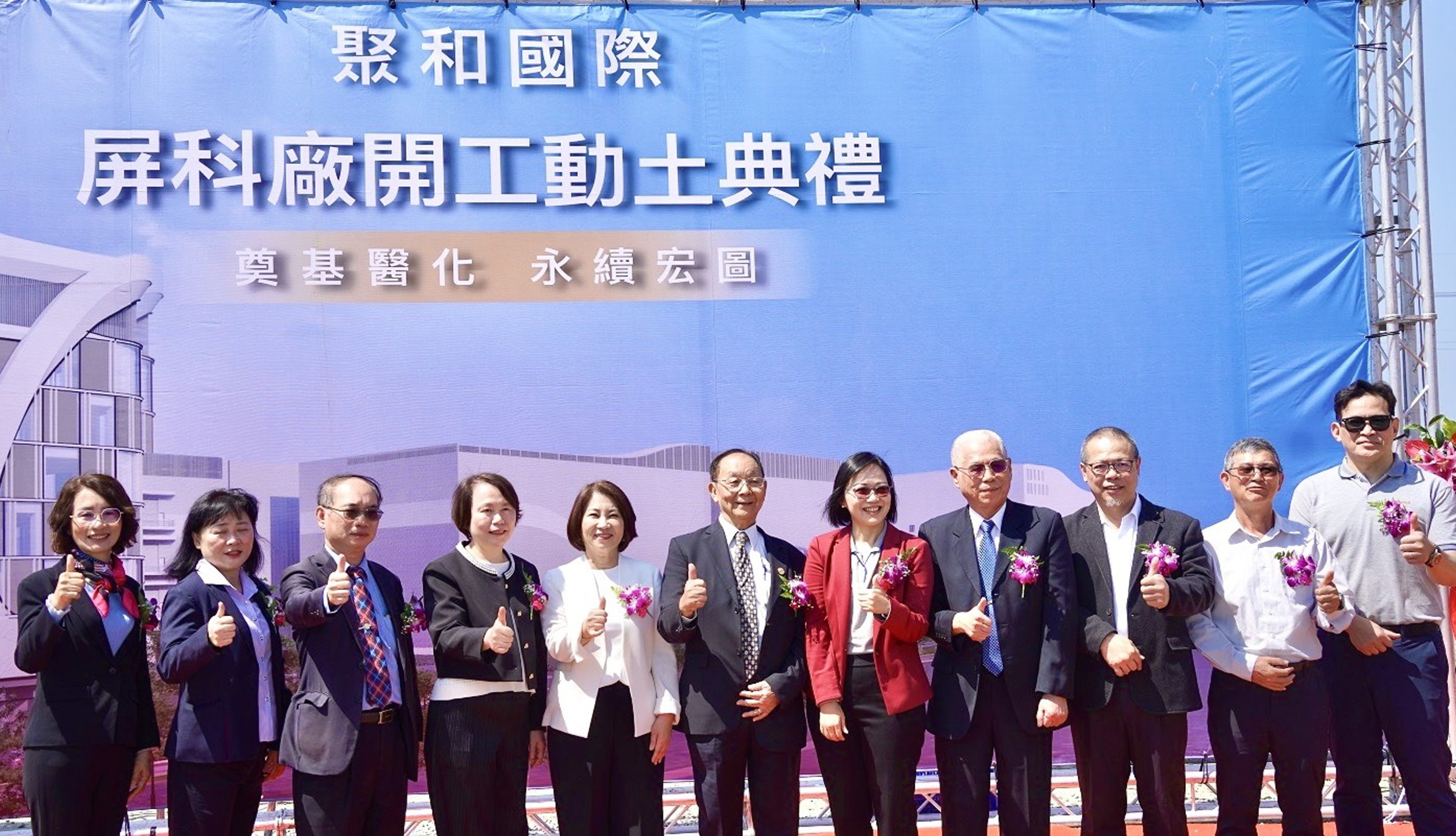 聚和國際的新廠動土典禮,由聚和國際董事長郭聰田、屏東縣長周春米、國科會南科管理局長鄭秀絨、經濟部投資促進司長張銘斌等人,共同執鏟祈福。