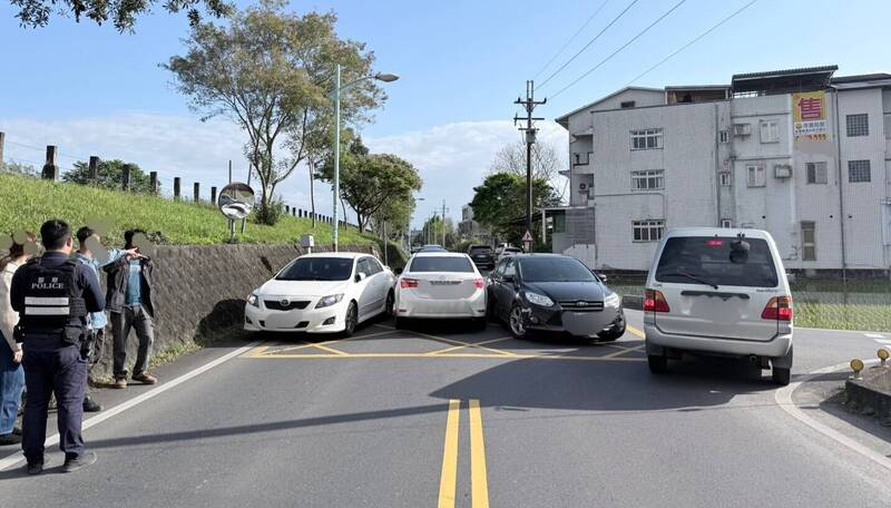 羅東警方十六日在上午七時五十九分獲報稱冬山鄉廣興路六八二巷與新邦路口發生交通事故,轄區警員到場處置,經過了解,林姓民眾駕駛自小客車沿著冬山鄉廣興路六八二巷北往南方向行駛,行經路口欲左轉時,與對向黃姓民眾駕駛直行自小客車碰撞,再波及李姓民眾駕駛的自小客車,三方駕駛均未受傷,酒測值零。
