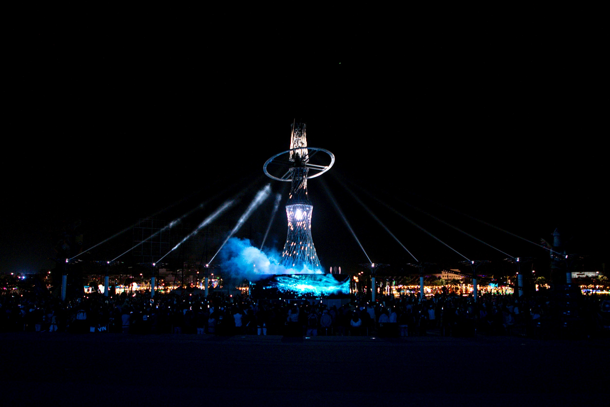 主燈「光沐-世界的阿里山」最後一次展演結束,所有人拋出彩帶慶祝,象徵2026台灣燈會圓滿結束。(記者湯朝村/攝)