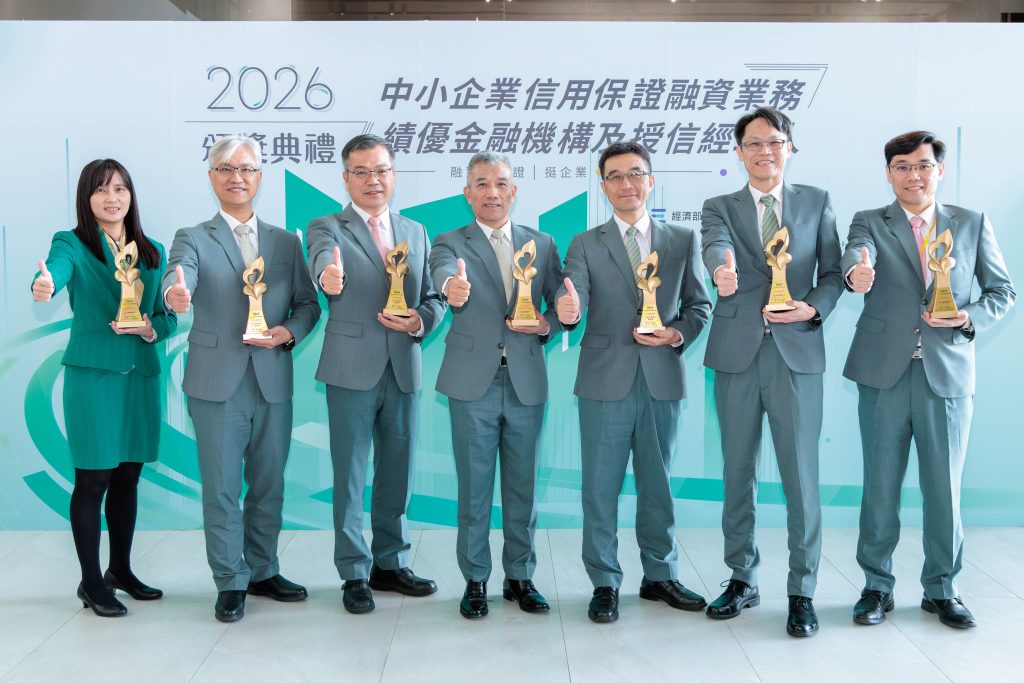 經濟部與中小企業信用保證基金於今(16)日舉行「2026 中小企業信用保證融資業務績優金融機構及授信經理人頒獎典禮」。玉山銀行展現堅實基礎,榮獲多項獎項肯定,包含連續7年榮登「信保金質獎–金融機構組」首獎、連續8年獲「批保卓越獎」,同時囊括「信保金質獎–授信經理人」、「中小微企業–淨零轉型類」及「協助提升國內薪資水準獎」等殊榮。此外,玉山以實際行動支持臺灣中小企業發展,連續21年榮獲「信保金質獎–績優總行」最高榮譽,再度創下臺灣金融業歷史紀錄。