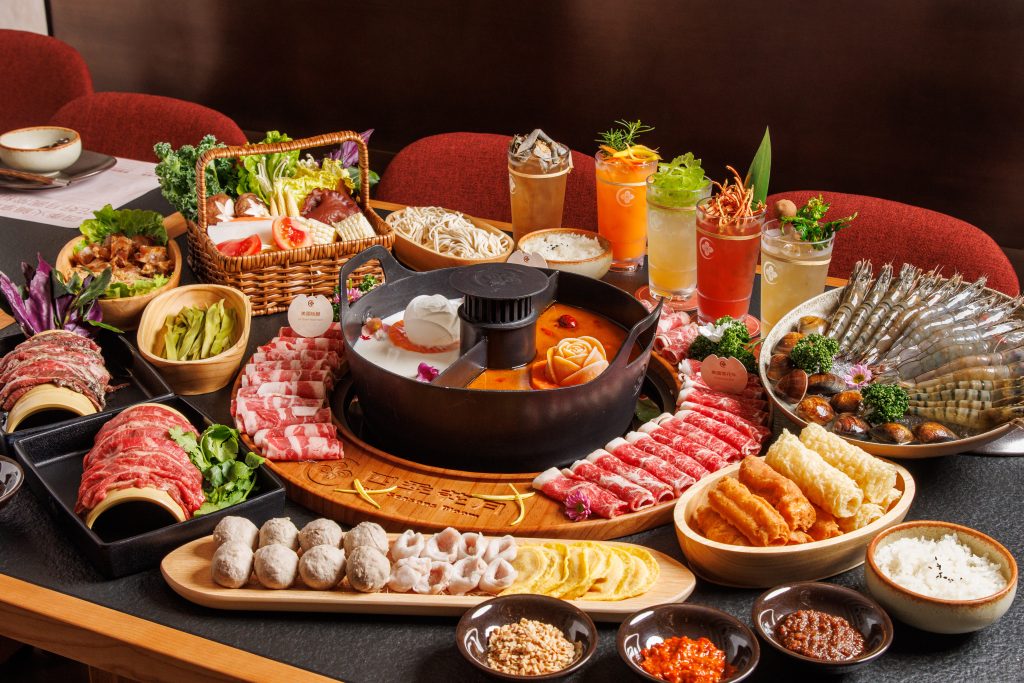 開幕即推出九款獨家湯底,麻辣鍋以先麻後辣的厚實辣感「重慶麻辣鍋」及先香後辣的細緻風味「成都麻辣鍋」兩款為代表,白鍋首推以南瓜基底結合酸菜,先酸後甜的超開胃「酸爽金湯鍋」,而100%純椰子水結合雞湯熬煮,清甜回甘的「椰香益活雞鍋」更是解辣首選!主廚推薦必嚐肉品就是以松露、山葵或沙薑醃漬的超軟嫩「九秒牛肉」,只要涮九秒就能品嚐到粉嫩多汁的板腱牛,而環繞著火鍋擺放、像極美麗花圈的超浮誇「山野肉花圈」則是集結多款肉品,讓有選擇障礙的消費者一次點好點滿!吃鍋最適合來一杯!光看就視覺滿分的兩款調酒及五款無酒精Mocktail,更是吃火鍋最好選擇!即日起至4/6四人豪華套餐祭出72折優惠,現省1500元,來店用餐還有機會抽中888元現金折價券!