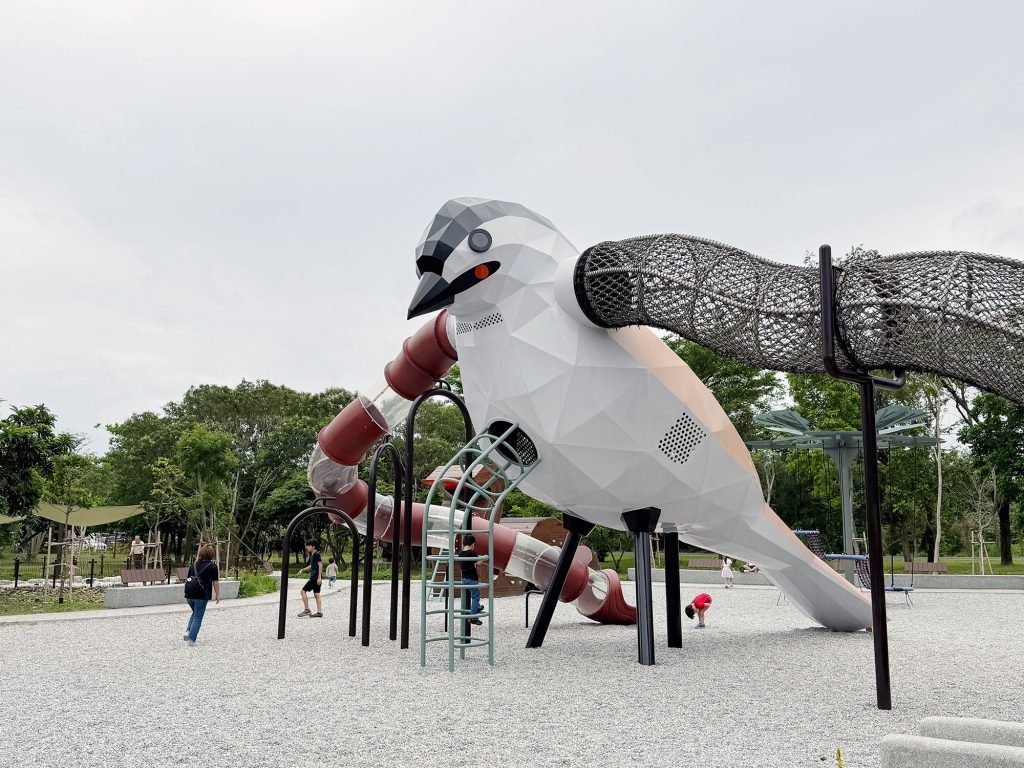 「烏頭翁遊戲場」以台東的地方鳥類「烏頭翁」為設計靈感,設有大型遊戲塔,並結合攀爬、滑梯、繩網等多項挑戰設施,不僅注重遊戲的挑戰性,也融合森林與濕地的自然景觀,使孩子在遊玩中體驗生態教育。
