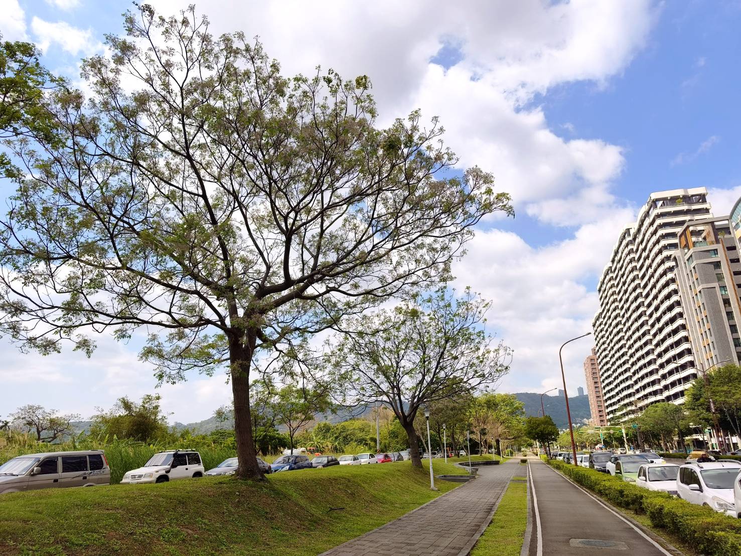 除了堤頂大道,陽光運動公園也是放空的熱門選擇 。白天可躺在草地上看飛機劃過紫色的樹頂,享受青春氣息;入夜後,在路燈映照下的苦楝更顯神秘溫柔,充滿微醺氛圍。同時也提醒,民眾前往大安森林公園欣賞杜鵑花與繡球花的同時,別忘了抬頭尋找這群淡紫色的優雅身影,感受這份專屬於春日的迷人驚喜 。