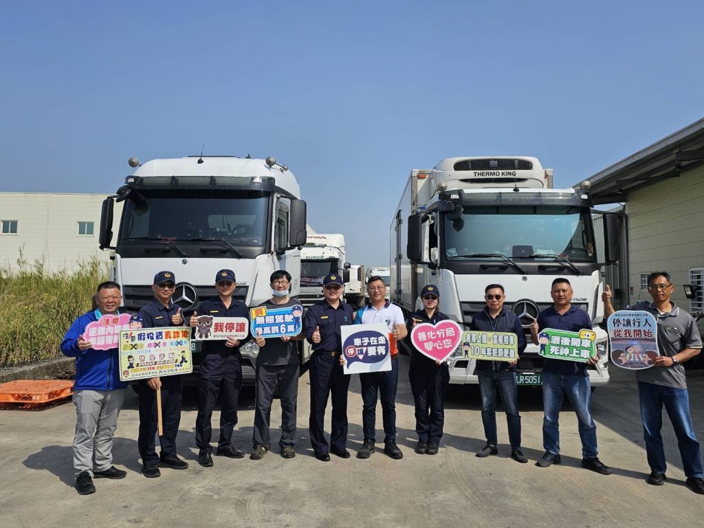 據警方資料顯示,善化分局轄區內今年一月至今,被舉發的大型車違規有上百件,其中超載十五件、闖紅燈十七件、未裝行車記錄器四件、超長超寬四件、其他各類違規五十九件。另今年至今,善化警分局轄內發生的大型車交通事故有十五件,致十八人受傷。因此,善化分局為防制大型車交通事故發生,並提升大型車駕駛人的交通安全意識,劉柏陞特偕同交通組、各派出所同仁走入轄區內企業,攜手天晨遊覽車客運公司、茂聖通運企業、盛南冷鏈物流及台灣水泥善化廠等大型車相關業者,共同辦理大型車駕駛人交通安全宣導活動,希望透過實務講解與案例分享,打造更安全的道路交通環境。