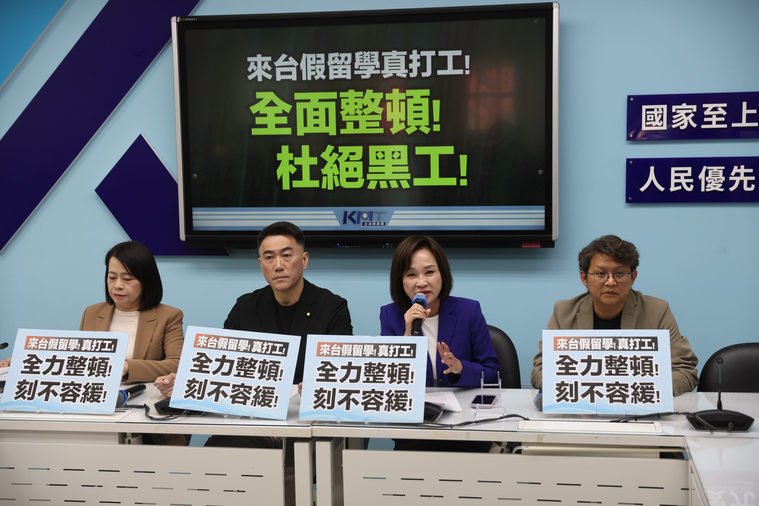 國民黨團提出三項訴求,包括全面檢討招生與仲介管理制度、強化教學與實習品質監督,以及建立私校監管與輔導機制,避免學校以招收僑外生維持營運。