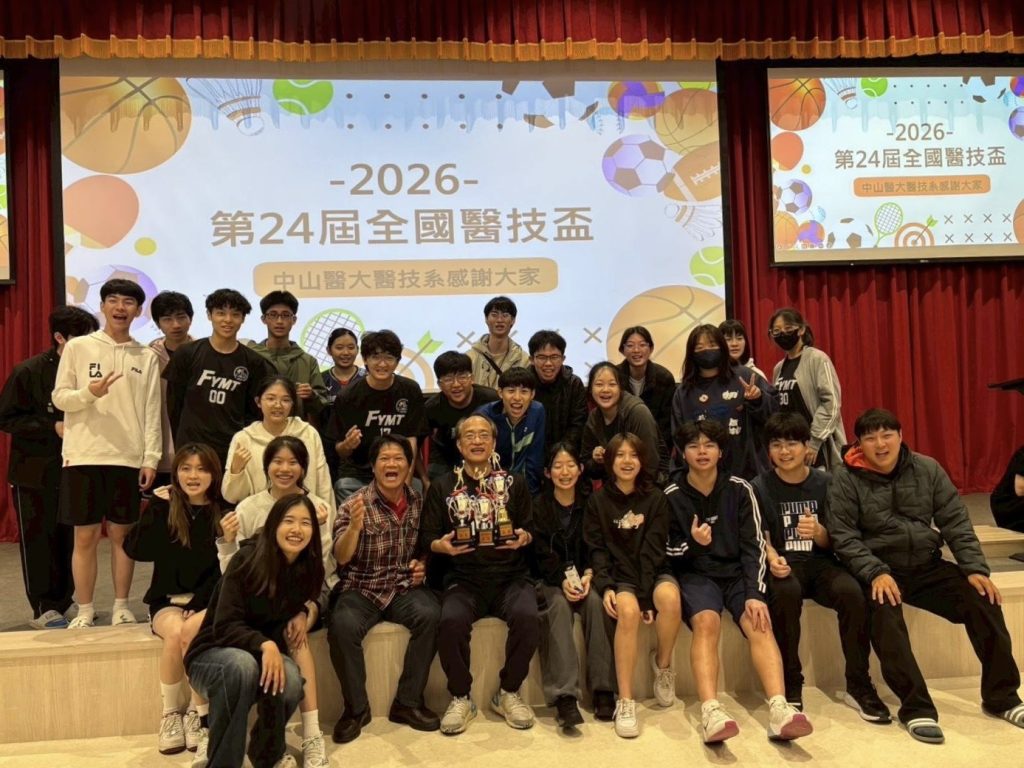 輔英科技大學參加2026「第二十四屆全國醫技盃」賽事,師生表現亮眼,聯手拿下桌球團體冠軍,並獲得羽球、排球雙季軍,為學校爭光。林爵士校長表示,師生「文武全才」的表現可圈可點,令人振奮,尤其曹德安主任與林冠華副教授親自上陣,雙雙奮力拿下關鍵勝點,帶領團隊奪冠,更展現團隊凝聚力與奮戰精神。