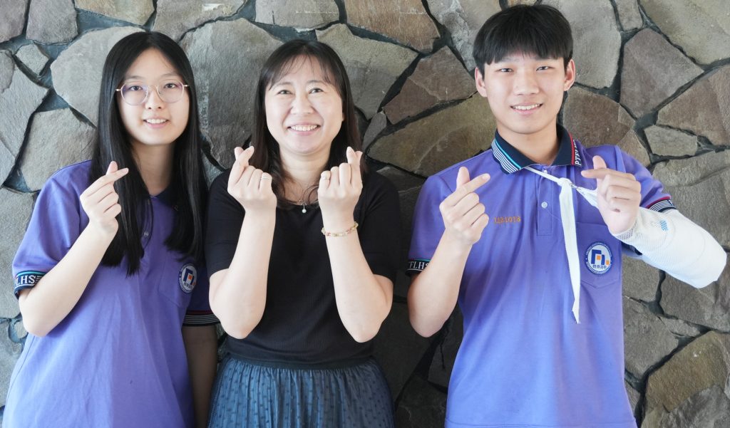 枋寮高中蘇羿庭、雙語實驗班導師、陳品安(由左至右)。(記者毛莉攝)