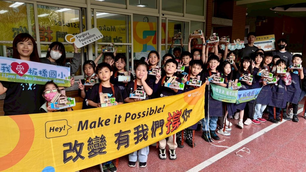 遠雄文教公益基金會十九日前往新北市板橋國小,課程帶領卅名三年級學童,體驗結合永續思維與空間美學的建築實作課。