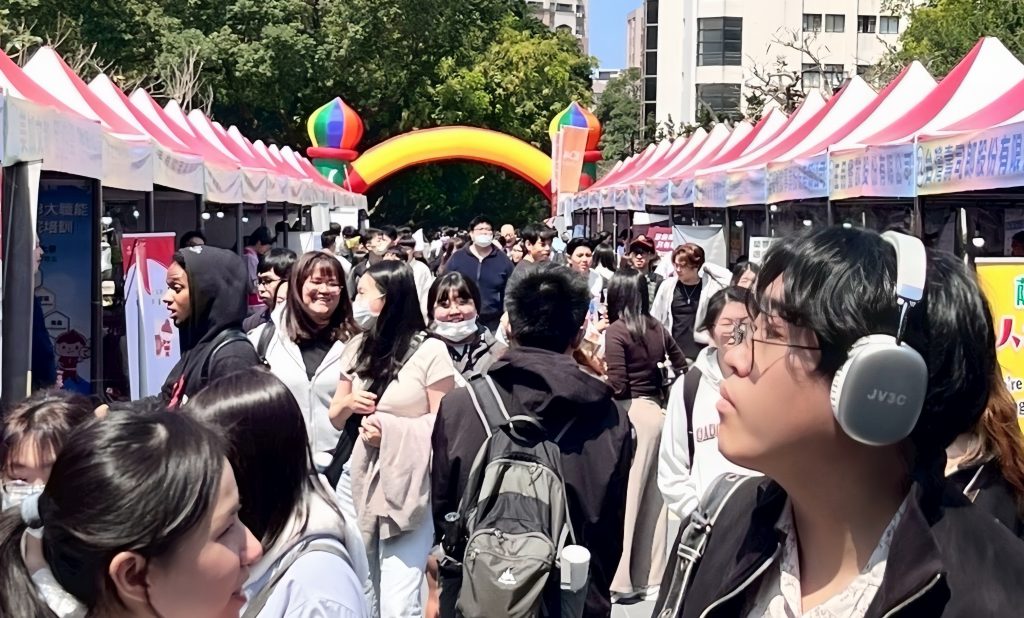 畢業季來臨,新北市首場校園就業博覽會昨日在淡江大學強勢開跑,吸引許多學生熱情參與,初媒合率達約五成一。 (記者吳瀛洲攝)