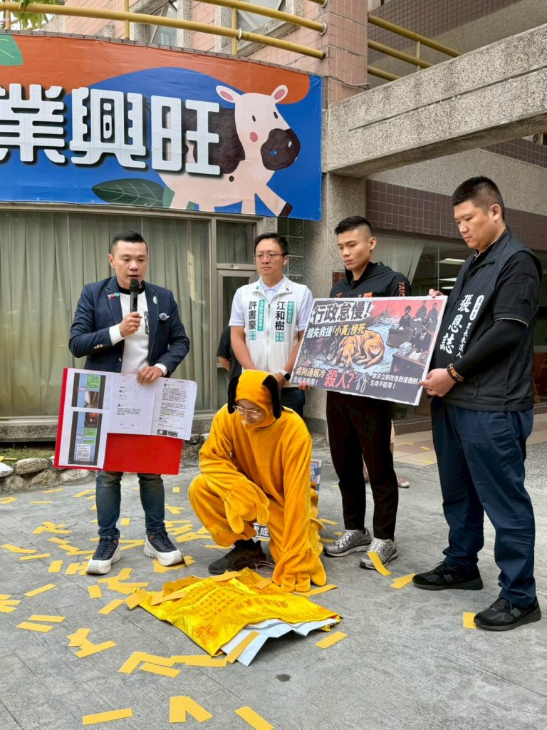 台中市議員江和樹、里長代表、陳情民眾,昨天前動保處陳情抗議。