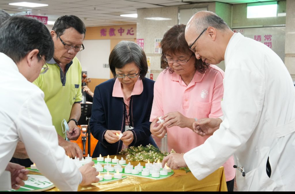 慶祝活動在宏亮的鑼聲中揭幕,象徵聖功醫院深耕醫療七十七載的堅實腳步,更是對每一位醫護同仁守護生命的最高致敬;接著進入溫馨感人的「點亮77盞燭光」儀式,邀請醫療副院長賴炳彰醫師、行政副院長李尚潔醫師、貴賓及同仁代表共同點亮燭光,蠟燭排列成和平鴿圖形,溫暖的橘光象徵光明與祝福,也傳遞守護生命、帶來希望的醫療初心,和平鴿的設計,則寄寓對當前世局和平的深切祈願。