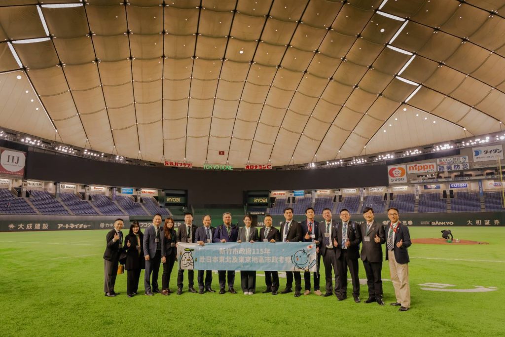 新竹市長高虹安率市府團隊赴日考察,十九日參訪「東京巨蛋」,作為推動「新竹小巨蛋」計畫以及新竹棒球場改善工程參考。