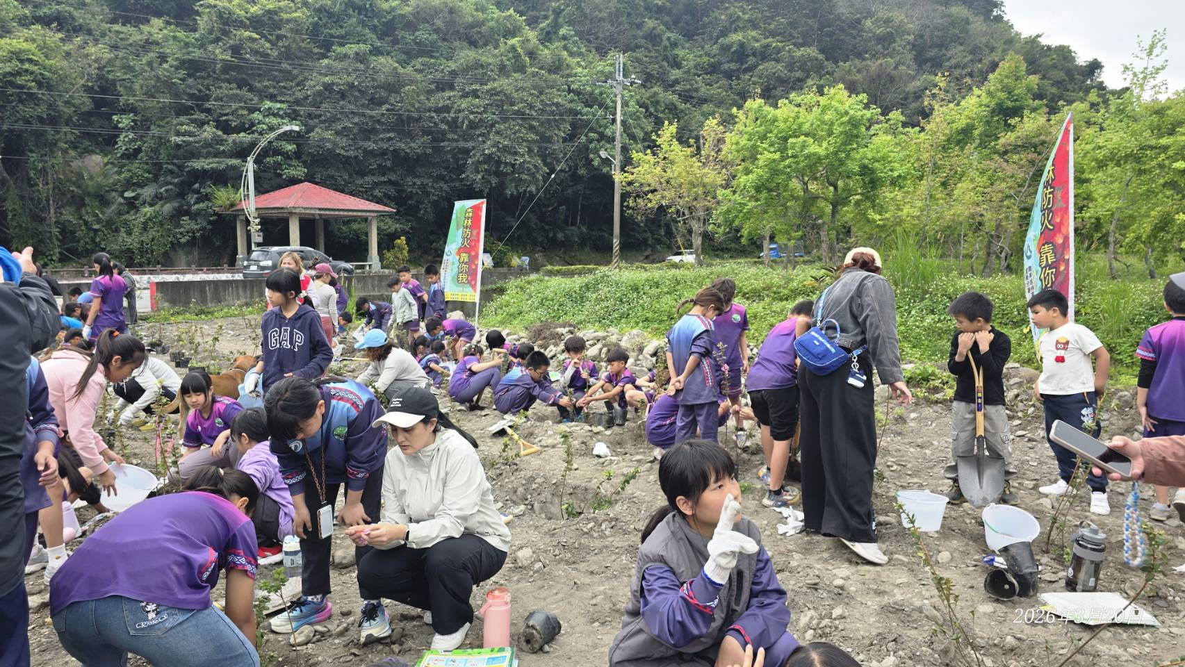 活動中,眾人齊心栽植金毛杜鵑,象徵為原鄉播下永續希望。林保署吉祥物「肖楠哥」與「打火勇哥」也現身同樂,向鄉親介紹台灣多樣的原生樹種,並親自示範正確的植樹技巧,讓民眾在歡笑聲中,輕鬆學習如何打造兼具生態友善與生活美學的綠色家園。
