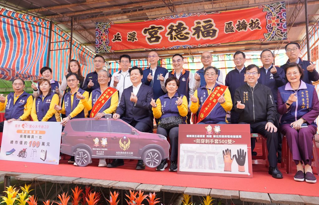 適逢農曆二月初二春分,也是福德正神聖誕,新北市板橋區深丘福德宮二十日一早善男信女便帶著鮮花供品,手持清香祈求闔家平安;福德宮主委陳廉誠現場代表捐贈新北市府輔具、警安基金、勘災指揮車、防穿刺手套及周邊學校馬上關懷基金等合計三七0萬元,由副市長朱惕之率相關局處首長受贈,感謝深丘福德宮善舉再添一筆。