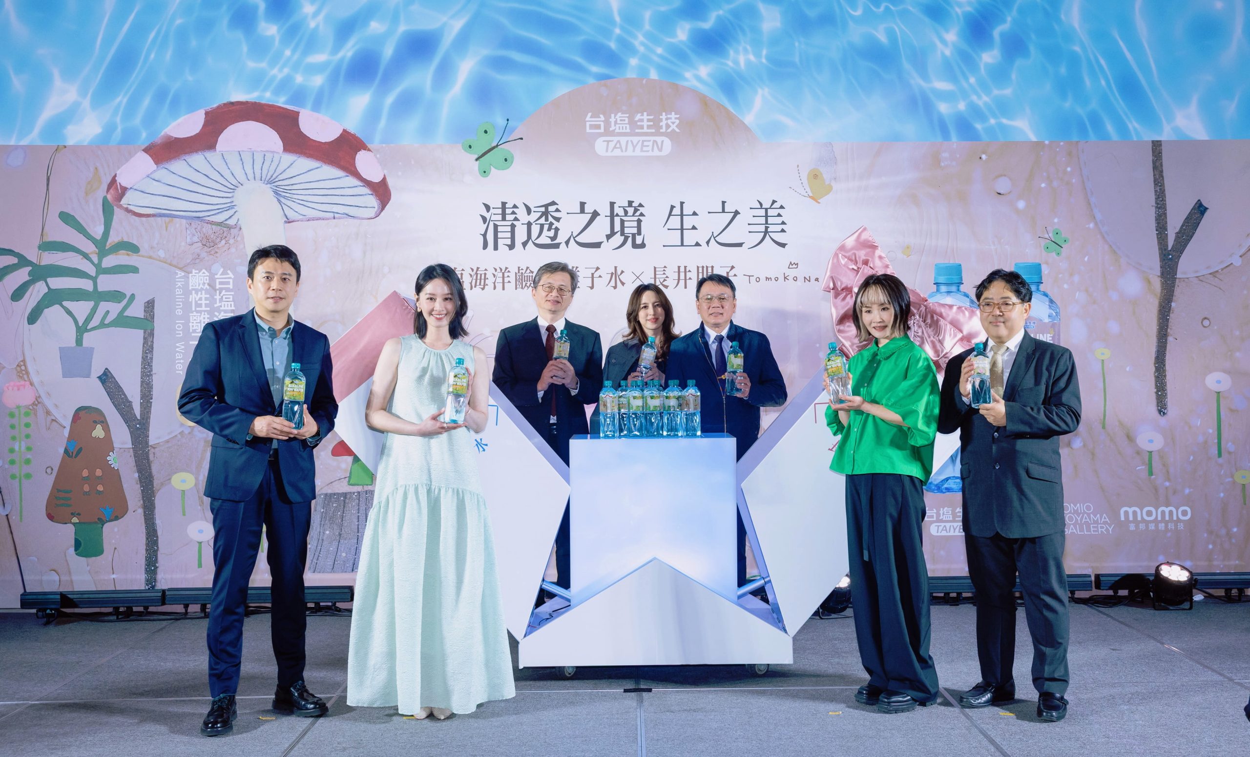 獲獎連連的台鹽海洋鹼性離子水再度與藝術結合,此次攜手日本重要當代藝術家長井朋子(Tomoko Nagai),以「清透之境、生之美」為主題,推出兩款藝術限量瓶與限量杯墊,三月二十日在寒舍艾美酒店舉辦發表暨藝術展記者會,永遠的女神曾愷玹也提供一幅她收藏的長井朋子畫作,一起參與展出。