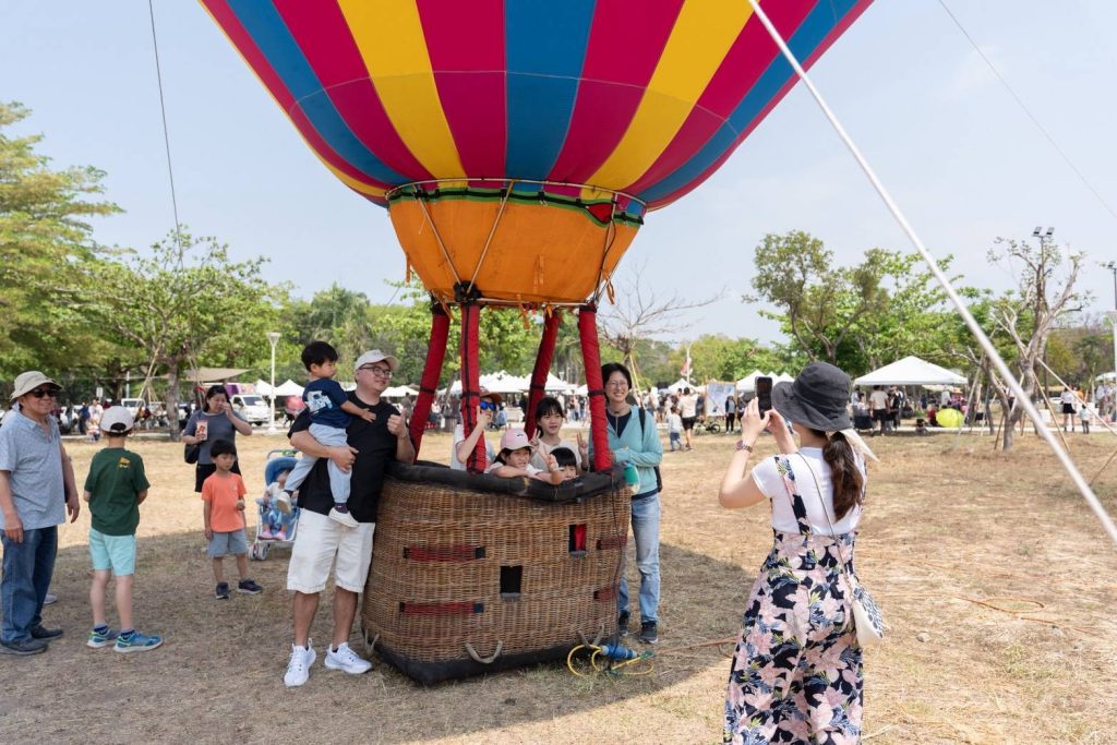 活動首日一早就吸引許多家庭到場踏青、欣賞色彩繽紛的熱氣球,現場還可走進熱氣球近距離體驗拍照打卡,現場除展示多款熱氣球裝置藝術外,還有市集活動,不少人坐在草地上休憩、聊天,享受悠閒的戶外時光,氣氛熱鬧且充滿活力。