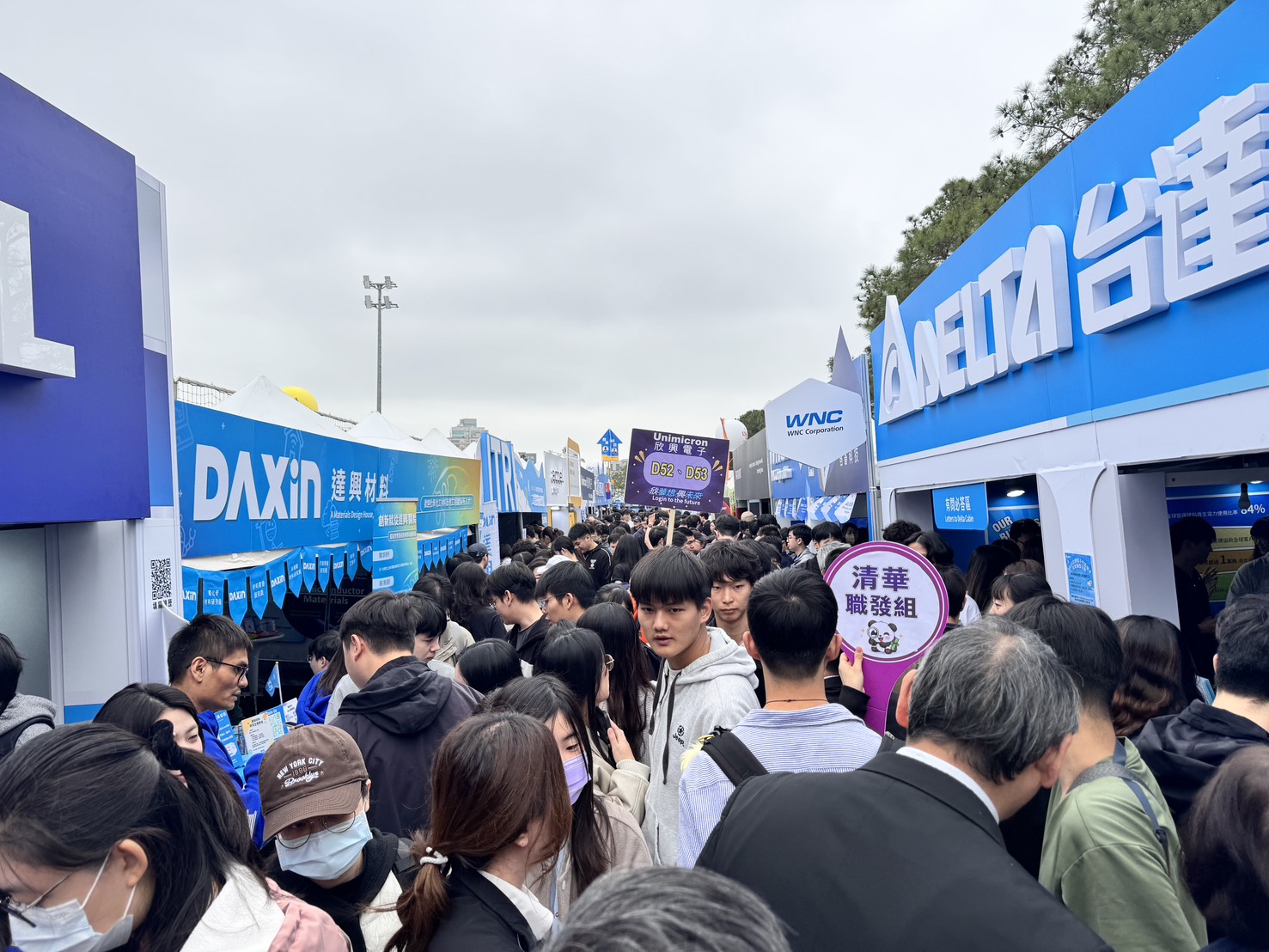 校園徵才博覽會,現場匯集台積電、聯發科技等一百六十家知名企業進駐搶人才,工作職缺涵蓋半導體、資訊科技、太陽能及證券金融等多元領域,合計釋出逾二萬個職缺,吸引眾多青年學子與求職者參與。