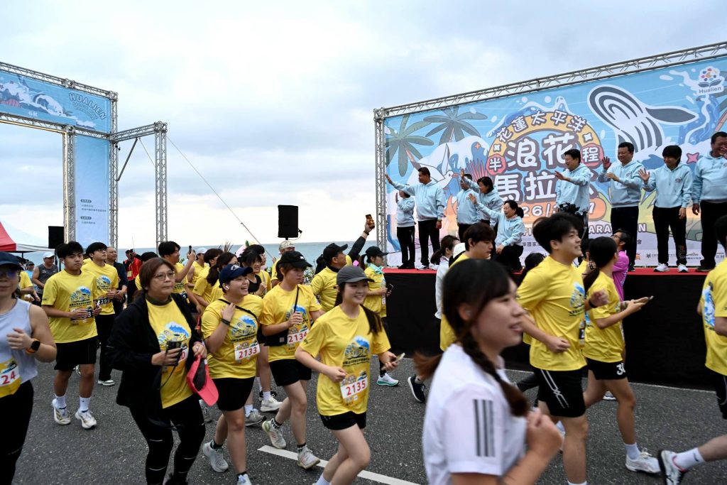縣政府表示,「二0二六花蓮太平洋浪花半程馬拉松」參與的跑者在日出、海浪、海風作伴下與太平洋壯闊美景並肩奔馳,此屆賽事共吸引 三千二百二十位跑者報名參與。