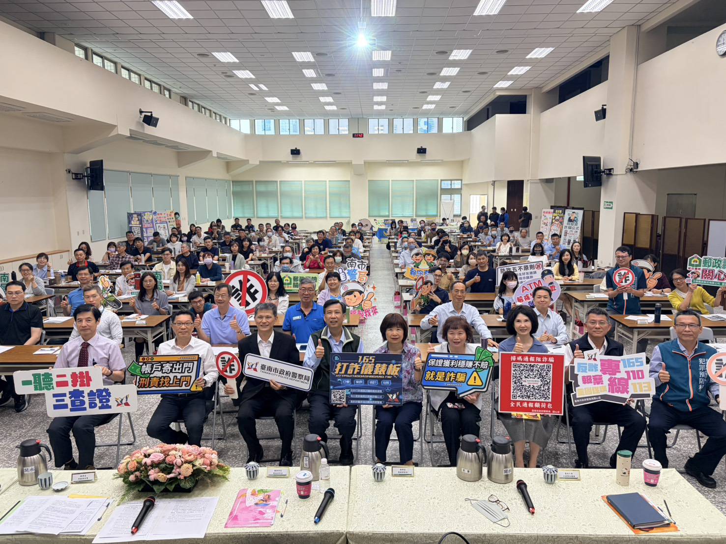 南市警局現場也特別向台南郵局各支局經理分享常見詐團話術,及假投資、假交友投資詐財、假推銷及假冒公務員詐財及解除分期付款詐騙等實際案例。警長林國清表示,近期詐欺案件與財損金額逐漸下降,但詐團話術持續翻新,提醒民眾若遇可疑情形,可撥打一六五反詐騙專線諮詢,或就近向警察機關求證,以避免財產損失。民眾主動提供線索、協助防詐也可獲得檢舉獎金最高可領取一千萬;金融從業人員亦有獎勵機制,成功攔阻也可獲得最高萬元獎勵。