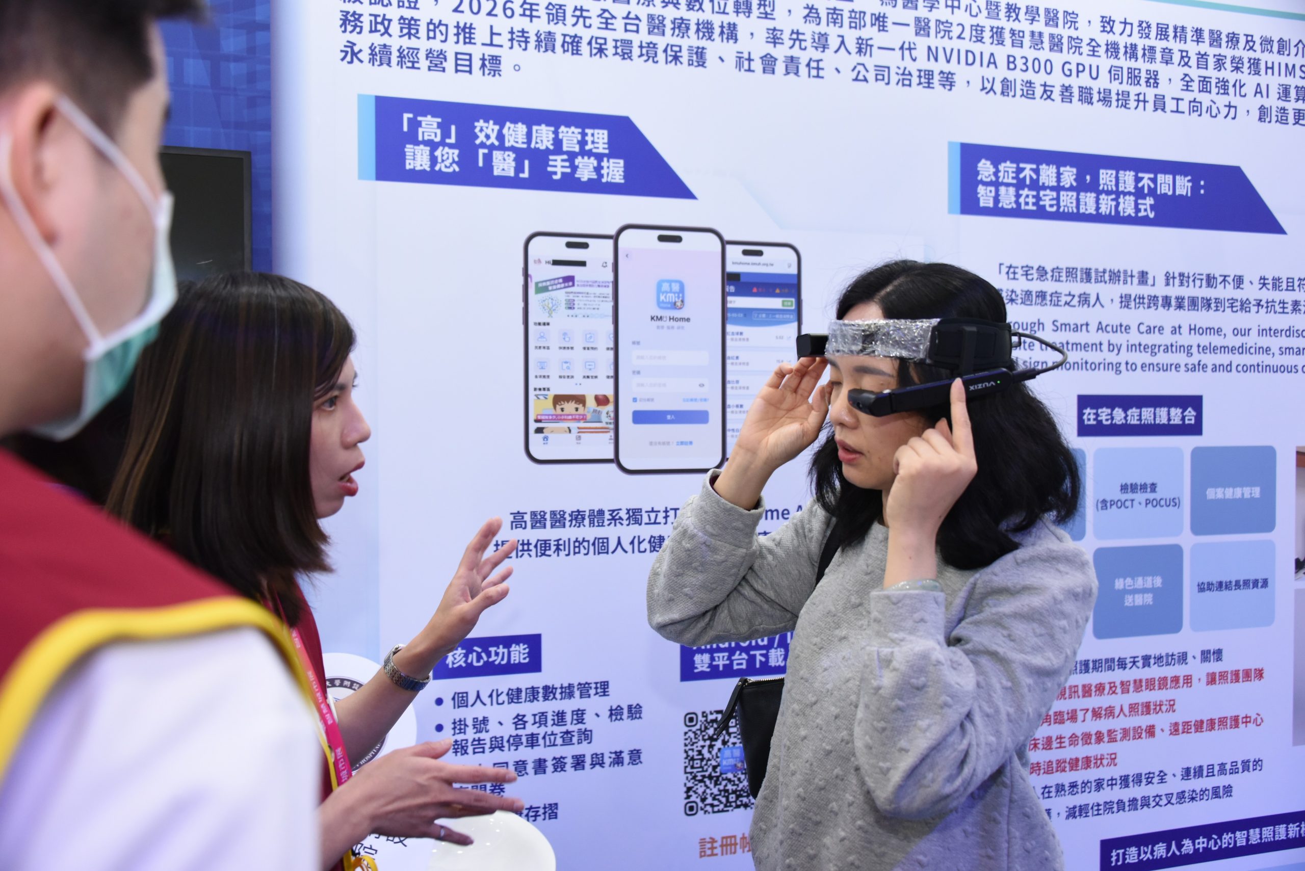在「2026高雄智慧城市論壇暨展覽」中,高醫展示多項智慧醫療與AI創新應用成果,包括「急症不離家,照護不間斷:智慧在宅照護新模式」、「AI在手,照護在守:醫照整合小幫手APP」、「吃的好、笑的開,咀嚼吞嚥深耕照護新模式」、「糖尿病AI照護:從連續血糖監測數據到精準營養與運動」,以及「深耕在地拓展旗津智慧長照─BestShaep Care零接觸肌少症檢測」等,透過AI與數位科技的整合應用,建構從醫療、照護到健康管理的多元智慧照護場景。