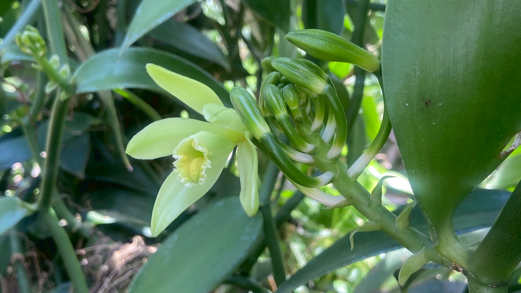 由於香莢蘭花的授粉在國外因有長鼻蜂可當媒人,但在台灣並沒有長鼻蜂,完全要靠人工授粉,因此一旦香莢蘭花爆開,人工授粉就是一項挑戰,每朵花都要由人去打開它的授粉閘門,再將花粉放入,這才算完成一朵花的授粉工作。尤建驊指出,香莢蘭的人工授粉是要練手的,否則一般人要完成一朵花的授粉,可能要超過六十秒,而他累積十年的經驗,一小時可完成六百朵,平均六秒可完成一朵,算是神乎其技。