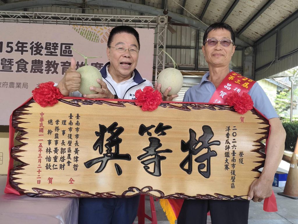 種植洋香瓜長達卅五年的王銘山,今年首度參加洋香瓜評鑑就抱回第一名「特等獎」,他說,由一開始摸索、觀摩,不斷汲取專業經驗,懷抱不怕失敗的心情,精益求精種出受市場喜愛的洋香瓜,洋香瓜是經濟作物,他輔導返鄉青農加入種瓜行列,期待後壁洋香瓜能攻占國內外更大市場。