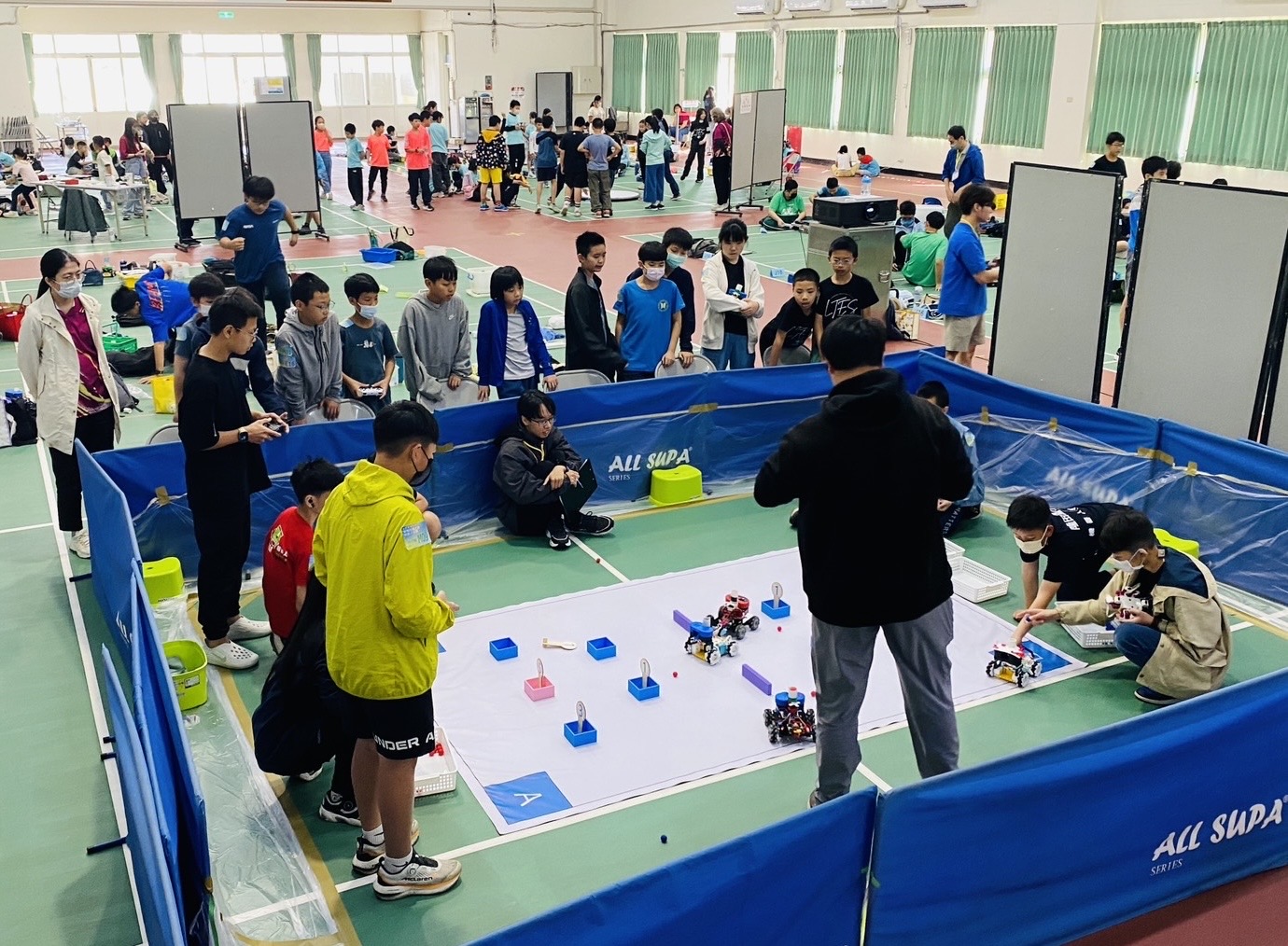 曾文區機器人邀請賽吸引近二百位國中、小學生同台較技。(記者盧萍珊攝)