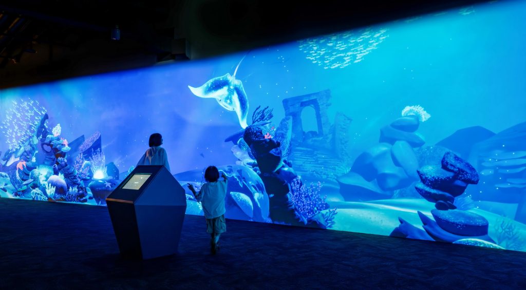 觀旅局指出,台中海洋館以「從台中河川 流向世界之海」為策展主軸,採創新開放式展示設計,打破傳統封閉式水族箱形式,讓遊客能更近距離觀察海洋生物。館內設有企鵝展示區、水母主題展區、台中河川展區、室內濕地體驗潮汐區、璀璨珊瑚展示區,以及全台首創三百六十度全透明「鯊魚虛實展示缸」等六大特色展區。