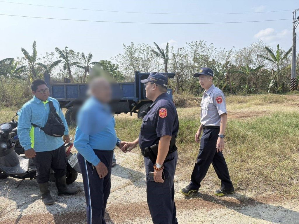 山上分駐所所長林建誌、警員張民穎獲報後,立即動員民力搜尋並調閱周邊路口監視器及車辨系統,雖初期未發現相關行蹤,但警方憑藉專業判斷,研判老翁可能受困於玉峰里附近,隨即深入山區產業道路展開地毯式搜尋,經過積極尋找,終於在當日上午九時三十分許,在山上區玉峰村中坑山區發現老翁獨自坐於貨車內。