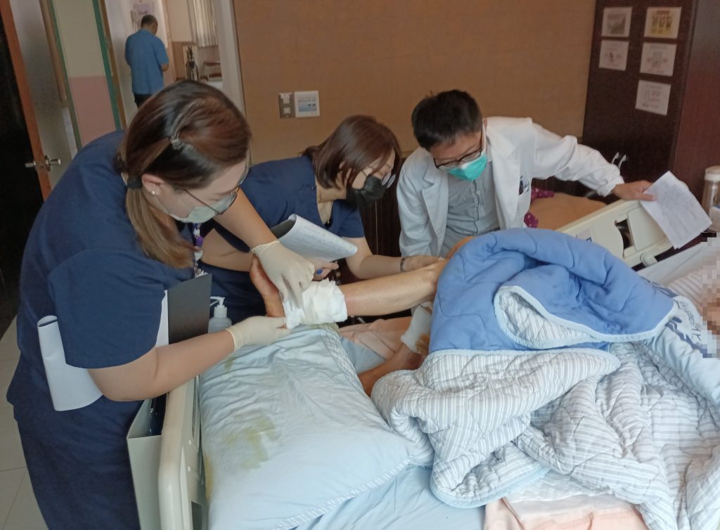 蔡卓榮說,他們評估高壓氧對阿嬤的傷口將有一定的助益,那是因為傷口組織缺氧時,白血球的殺菌能力會下降,導致感染風險增加,透過高壓氧治療,氧氣能夠擴散到傷口,加速傷口癒合、帶入更多抗生素到達感染處,而且高濃度氧氣也能直接殺菌、加強白血球的殺菌功能,對於傷口復原有莫大助益。