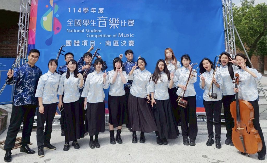 國立台南大學「大成國樂社」參加教育部「一一四學年度全國學生音樂比賽」,在絲竹室內樂合奏大專團體B組中,以精湛的演奏技巧與細膩的情感詮釋,榮獲「特優」肯定,締造連續三年蟬聯最高榮譽的亮眼成績。