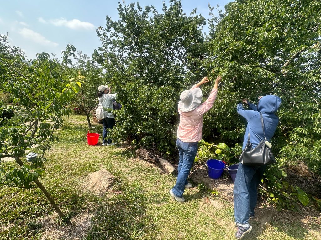 楠西梅嶺進入青梅季,民眾歡喜體驗採青梅。(記者張淑娟攝)