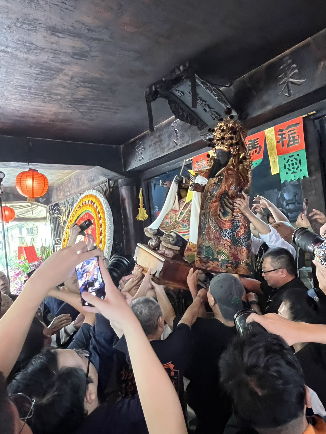 舊廟出火之後,馬上在新的行館舉行安座儀式,由主任委員黃百榮率諸執事上香祭拜,隨即開放信眾入內拜拜。