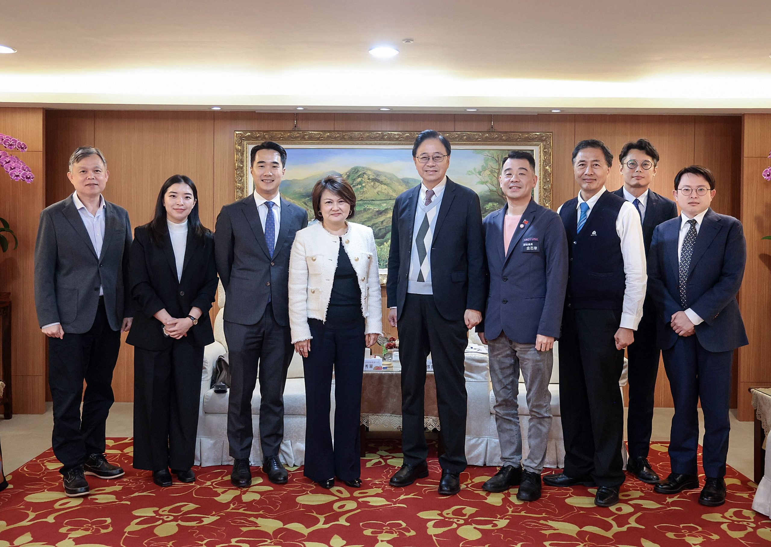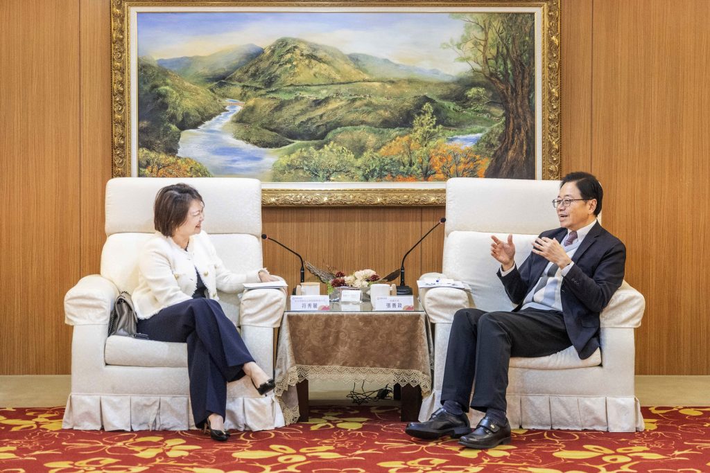 桃園市長張善政二十三日會見新加坡駐台北商務辦事處符秀麗代表一行,雙方就智慧城市發展、AI各領域應用及桃園推動可負擔住宅、免費擴大肺癌篩檢服務等多項議題進行交流,盼進一步擴大各領域合作。