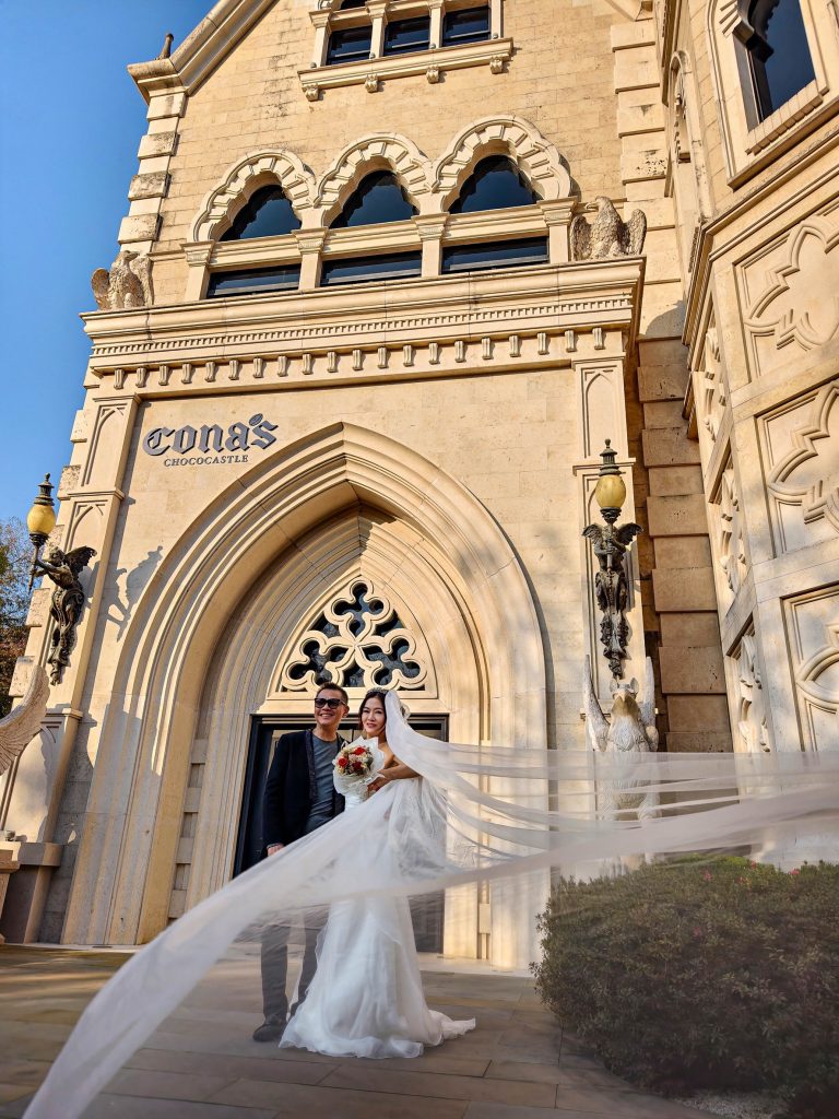在細節處,劉盈盈也展現了推廣台灣品牌的用心。婚禮伴手禮特別挑選了傳承 70 年、韓國觀光客來台必買的「大黑松小倆口」經典禮盒;婚禮小物則是來自南投「妮娜巧克力城堡」的精緻手工巧克力,捧花則選用質感高雅的「代官山花藝」。
