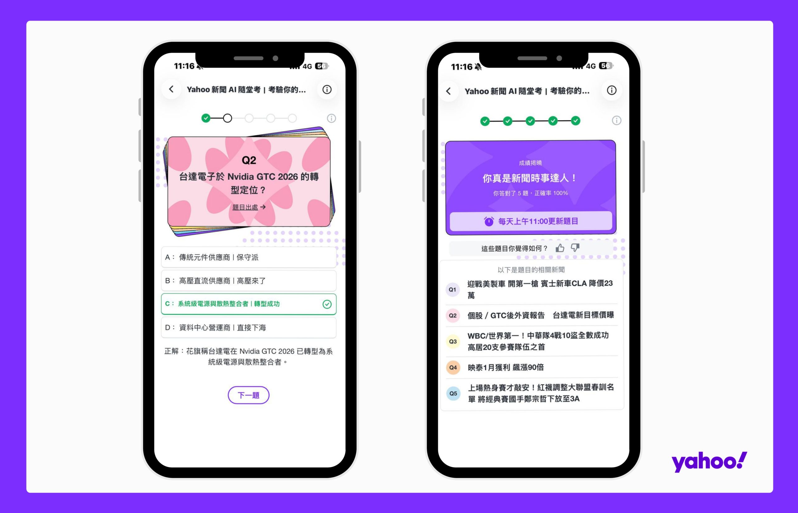 從經典小遊戲到新聞互動,Yahoo App透過AI持續優化新聞內容與閱讀方式,讓用戶一站滿足資訊獲取與日常娛樂需求。
