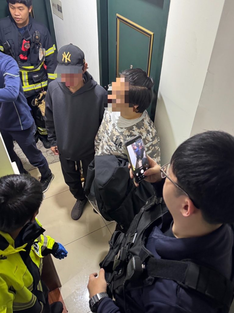 經員警到場查處,同時通報消防局一一九指揮科。員警在電梯外安撫受困兩人情緒並聯繫維修人員前往搶修,同時會同消防同仁及電梯公司人員協力處置,歷經約半小時順利排除故障後,將兩人安全救出脫困,現場無人受傷。