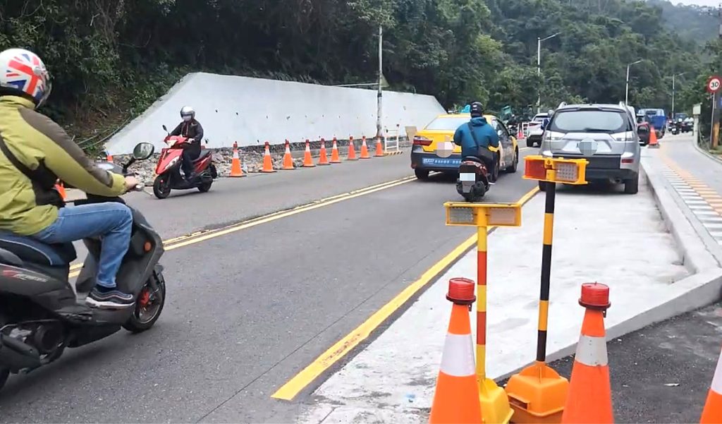 安樂路二段自強隧道口周邊拓寬人行道新設避車彎,引發安全疑慮。(記者鄭鈞云翻攝)
