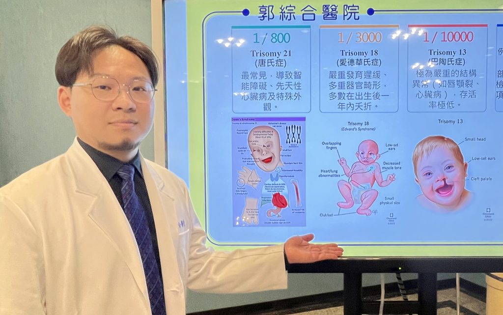 一名25歲孕婦於孕期15週接受非侵入性產前胎兒染色體檢測(NIPT)疑似唐氏症,經羊膜穿刺確認終止妊娠。郭綜合醫院婦產科醫師王尚文表示,產前檢查不只觀察胎兒成長,更重要的是透過產前篩檢,及早了解胎兒染色體異常風險,為後續醫療照護與家庭安排爭取更多準備時間。