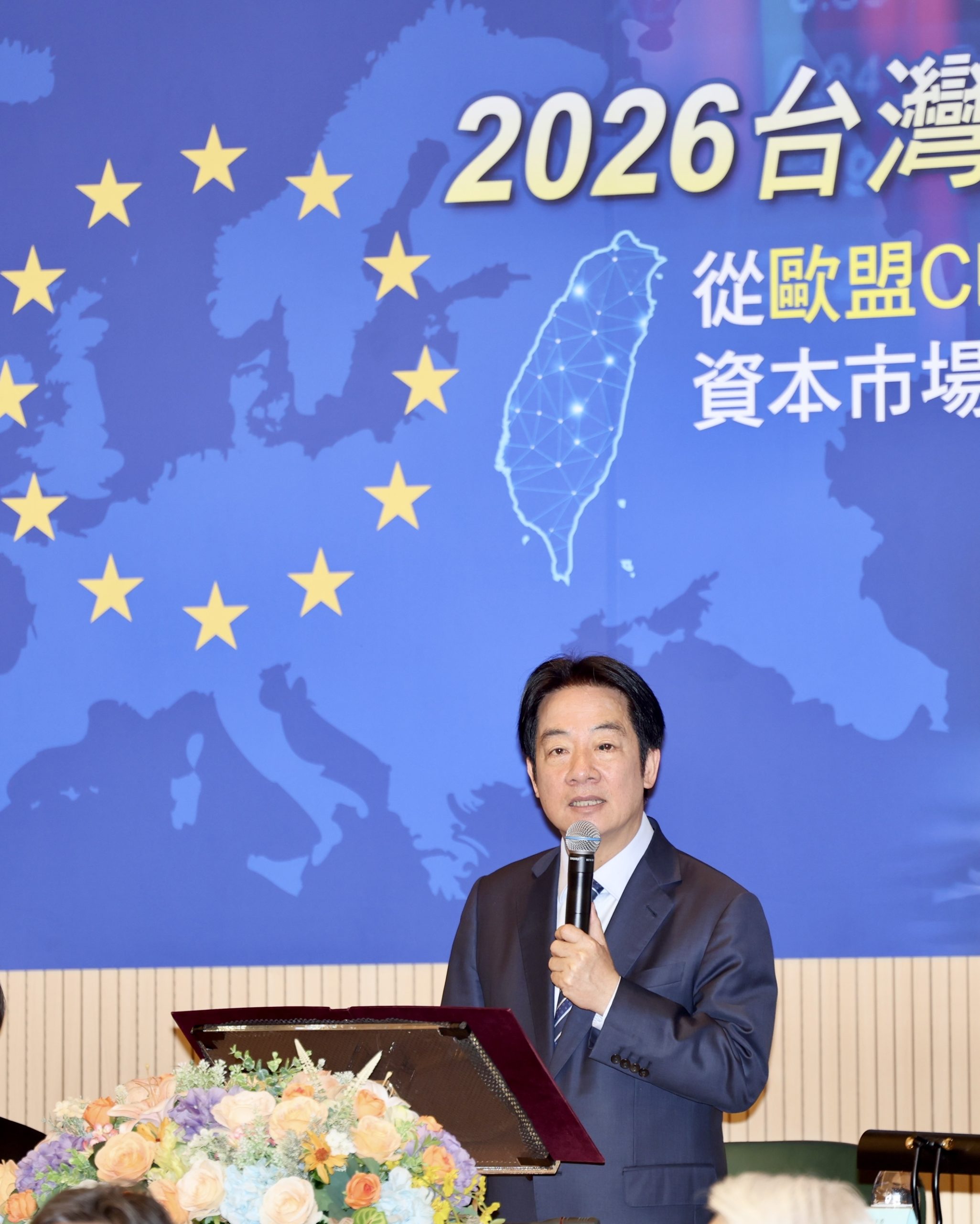 賴總統指出,過去四年台灣對歐洲的投資超越過去四十年所累積的投資金額,另一方面,歐洲是台灣第三大貿易夥伴,也是台灣最大外國投資來源。