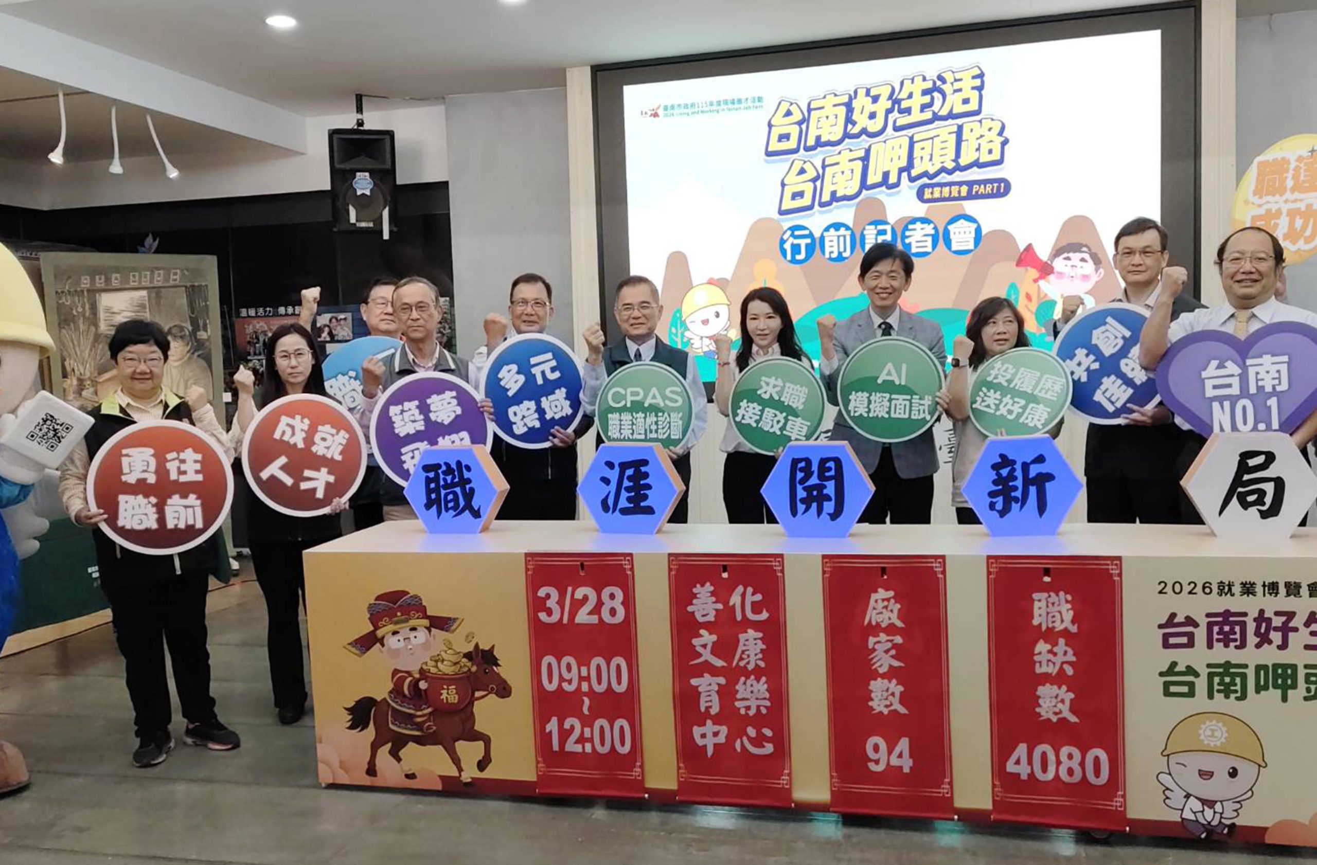 這場大型就博會行前記者會二十五日在民治市政中心一樓大廳舉行,副市長葉澤山說,台南重視招商引資,由二0一九年至二0二六年一月吸引企業進駐,投資台南高達二千九百九十二億元,創造六萬四千餘就業機會,透過各種就業媒合為企業找到好人才,為民眾找到適合的工作。
