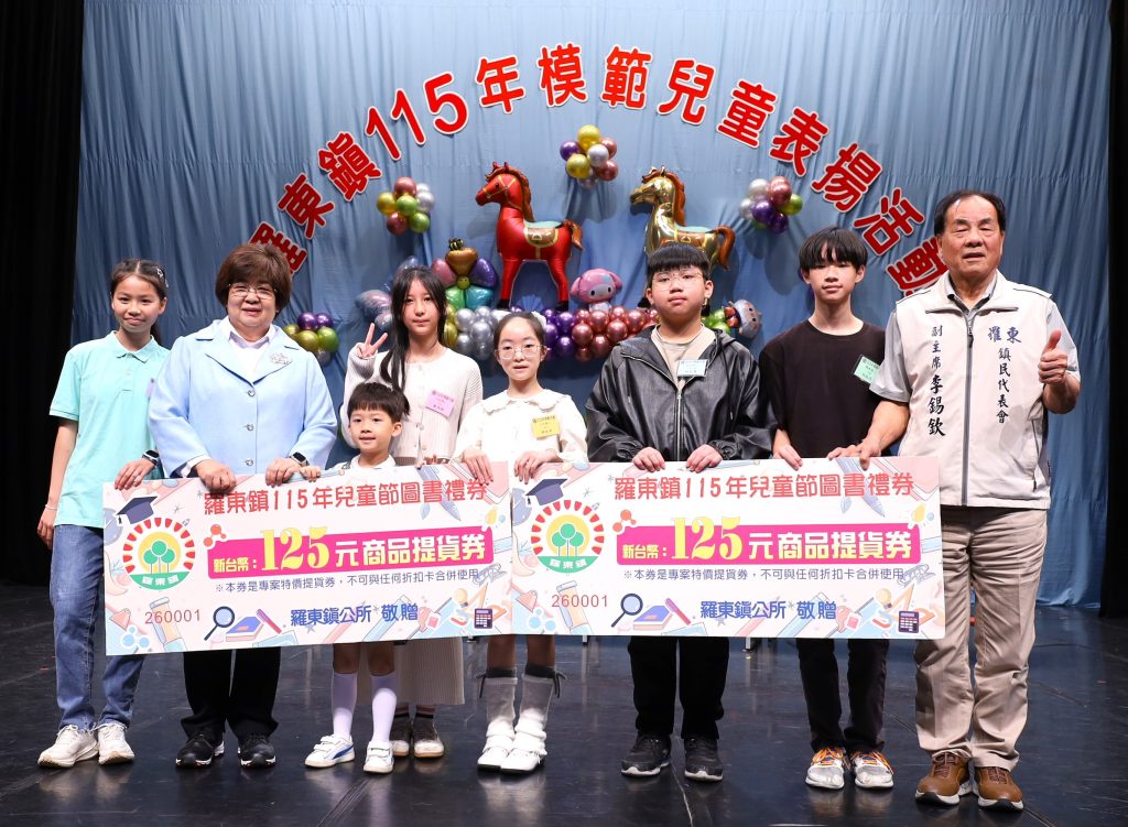 羅東鎮公所於兒童節前夕辦理模範兒童表揚活動,並發放圖書禮券給全鎮七千二佰多位學童,包括國小五千多人及公私立幼兒園一佰七佰多人,每人可獲佰二十五禮券,鼓勵孩子自由選購圖書與文具,培養閱讀興趣,滿足多元學習需求。