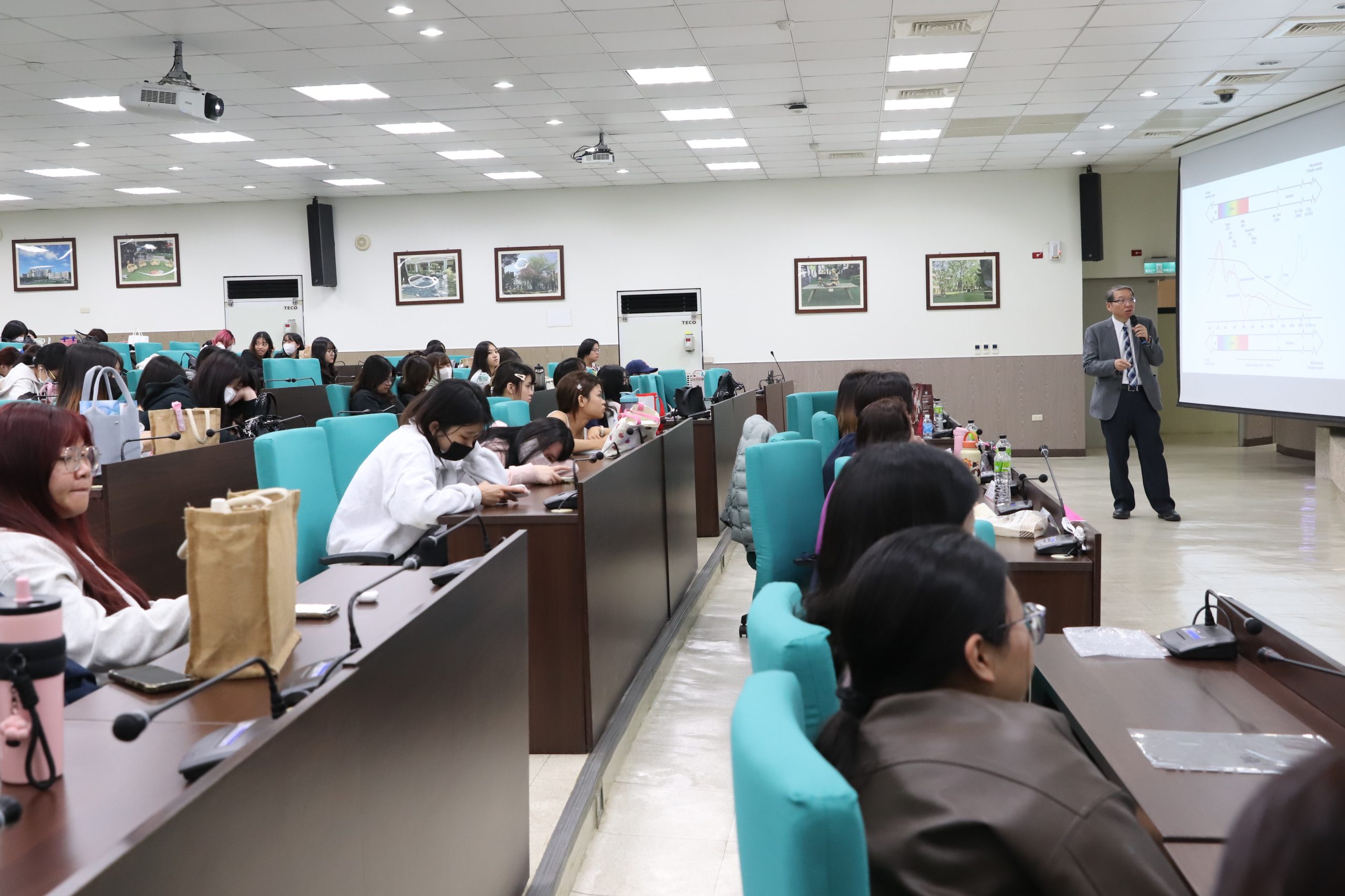 許乃仁醫師受邀到中華醫大專題講座,吸引生醫及美容保健科系二百多位師生到場聆聽。 (記者黃文記攝)