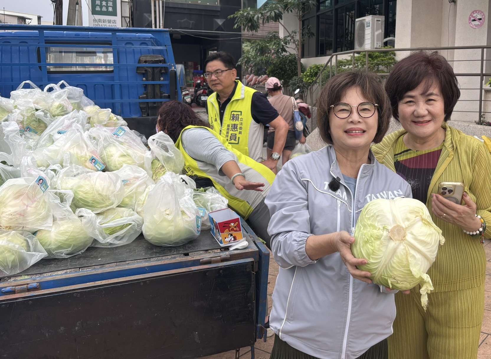 立委賴惠員廿四、廿五日兩天下午於南瀛親子館前舉辦「銅板做愛心 高麗菜義賣」活動,以每顆二十元價格義賣高麗菜,邀請鄉親用最實際的行動支持在地農業、關懷弱勢。